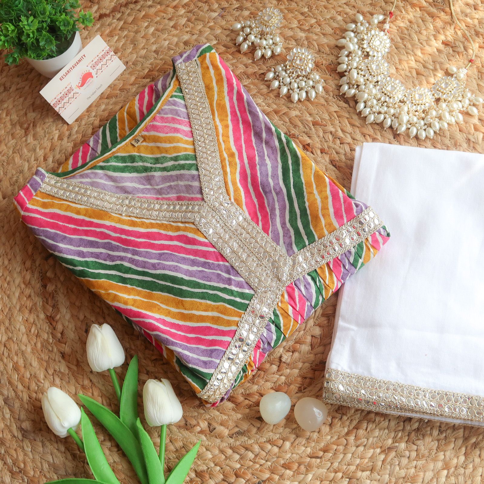 The "Leheriya Elegance" Kurta-Pants Set is the embodiment of grace and style. Whether you're attending a festive gathering, a special event, or simply want to make a fashion statement that's both traditional and contemporary, this ensemble showcases your impeccable taste and ensures you stand out with sophistication and allure.