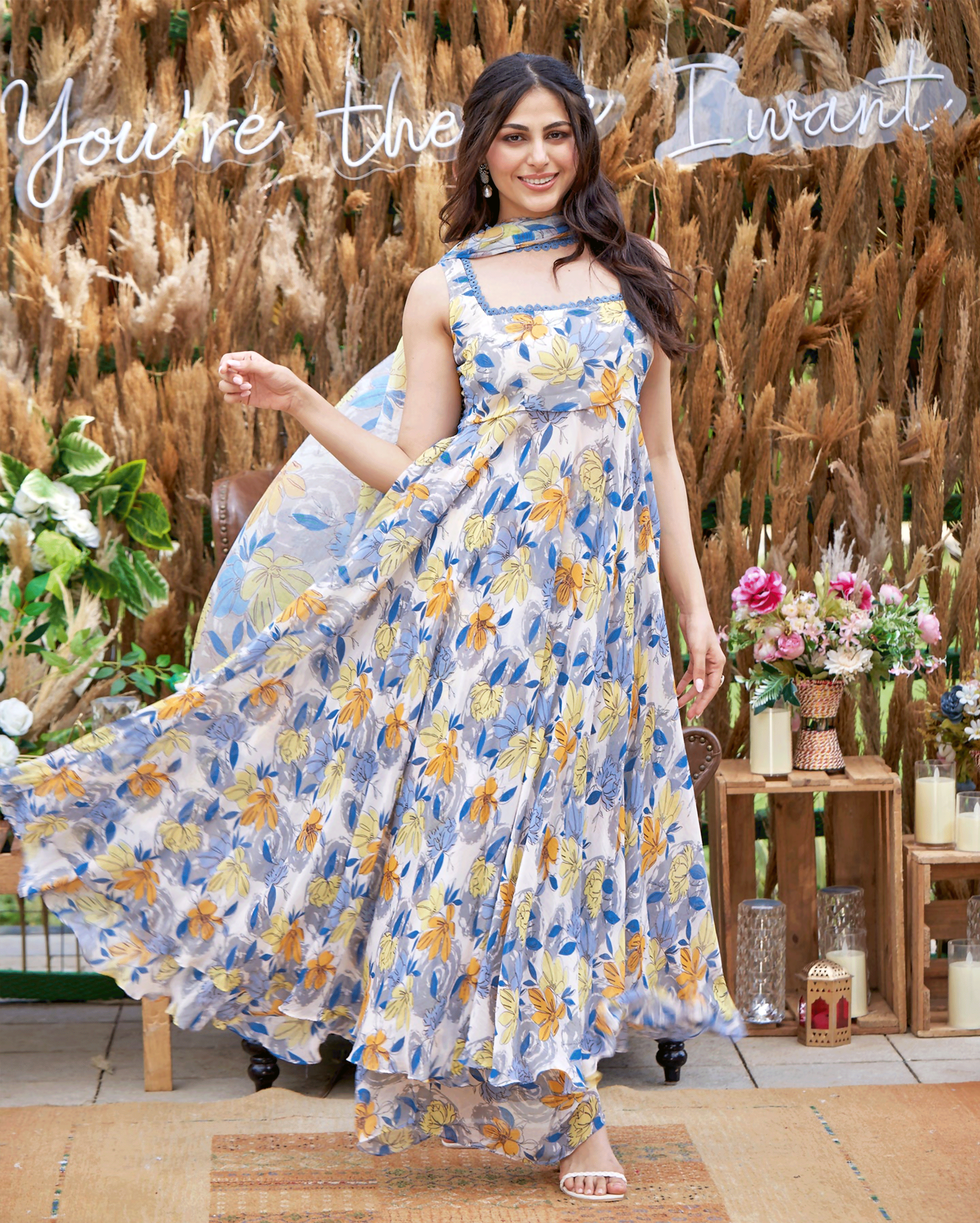 Refresh your ethnic collection with this White Printed Georgette Suit Set, designed for effortless charm and all-day comfort. The lightweight georgette fabric flows beautifully, while the delicate print adds a subtle touch of sophistication, making it an ideal choice for festive occasions and casual gatherings alike.
